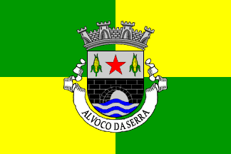 The bridge on the arms likely stands for an actual bridge over the River Alvoco and the star is the usual reference to Serra da Estrela, here more aptly chosen than most elsewhere, as Alvoco da Serra is one of the four communes sharing the Star Peak —