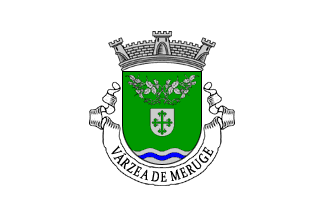 Mural crown Argent with three visible towers (village rank) and white scroll reading in black upper case serifed letters "VÁRZEA DE MERUGE".