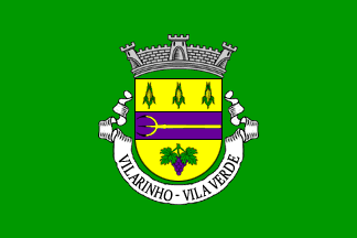 Mural crown Argent with three visible towers (village rank) and white scroll reading in black upper case serifed letters "VILARINHO - VILA VERDE".