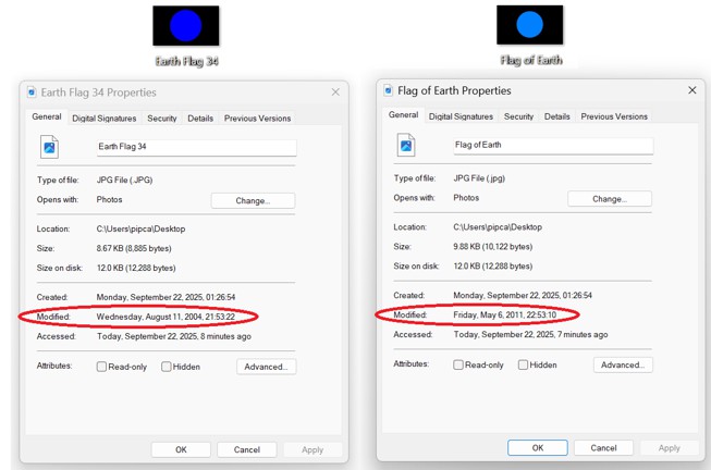 with a blue disc as an earth flag back in 2004, and the one with a light-blue disc in 2011.