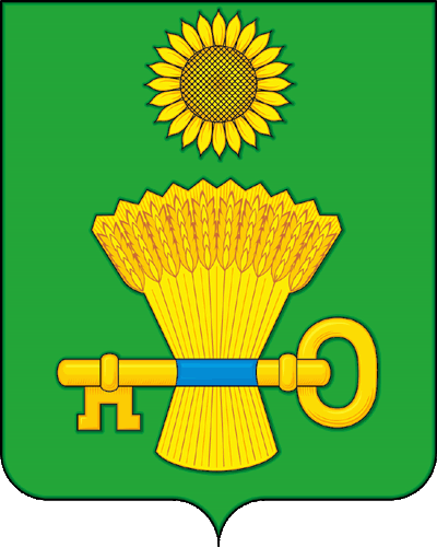 In a green field - gold: a sheaf, accompanied at the top by a sunflower flower