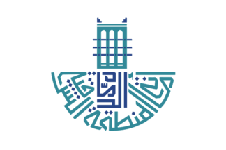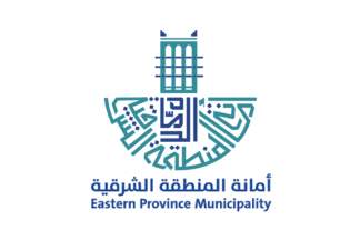 The flags of Eastern Province Municipality with seat in Dammam are white with the logo centered. There are minor variations in the appearance of the logo, and other designs may be possible.