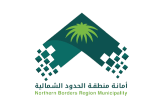 The flag of flag of Northern Borders Province with seat in Arar is white with the logo centered, with the name in Arabic and English.