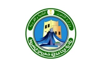 The flag of Khamis Mushait in Asir Province is white with the logo centered.