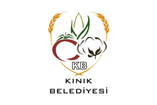 The flag of Kınık (photo, table flag) is white with the municipality's emblem. "Belediyesi" means "Municipality". The former municipal flag was white with the municipality's former emblem.