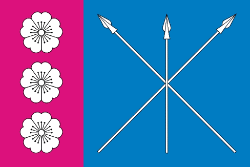 crimson head three silver cherry blossoms in one row. The main element of the county coat of arms
