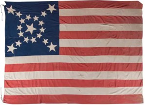 A U.S. flag with 19 stars, but only 9 stripes (missing stripes possibly