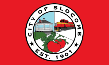 The seal is made of a white ring which is inscribed with the city name and founding year, which are seperated by a star on either side. In the center are three features core to the city. The first is the Hartford & Slocomb Railroad 913, a 1950 American Locomotive Company RS-1 diesel locomotive which ran from 1953 until 1992 where it was donated to the Tennessee Valley Railroad Museum. The second shows two tomatoes-on-a-vine, a prominent crop in the reagion and the Slocomb Tomatoe Festival. The third is the town's Gazebo located in the aptly named Slocomb Gazebo Park.
