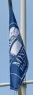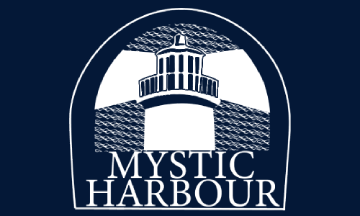 The flag is a dark blue field with the community logo in the center, which features the lighthouse that is present at entrance to the community.