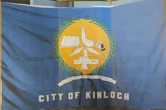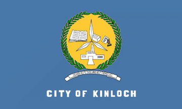 The flag has a blue background. City of Kinloch is written in white letters