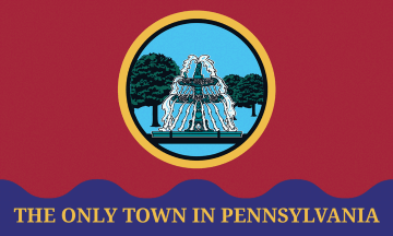 Within the blue stripe shall appear the words: "THE ONLY TOWN IN PENNSYLVANIA." The motto shall be centered horizontally within the stripe and shall be rendered in gold (Hex #FAD200).