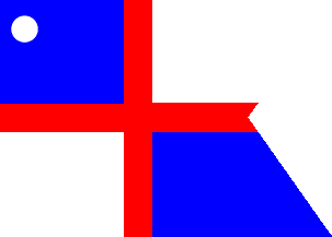 3) A cross whose vertical arm may or may not be centred but whose horizontal arm is closer to the top or bottom of the flag – but see note b) below.
