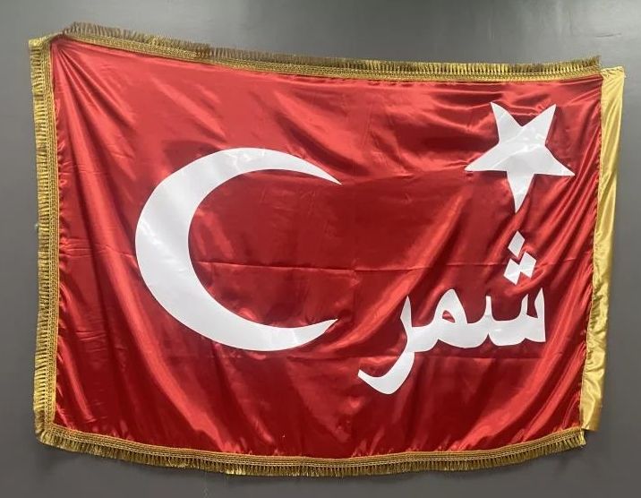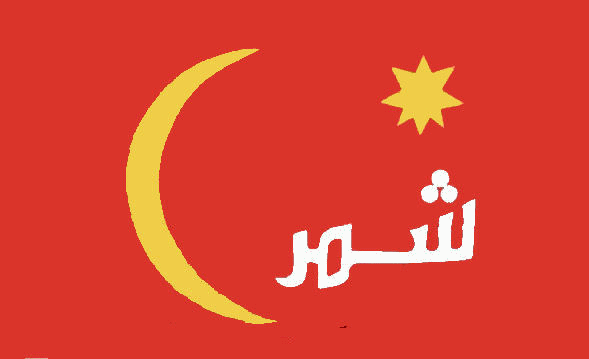 flag of the Emirate of Jebel Shammar with the name of the tribe "Shammar" added,